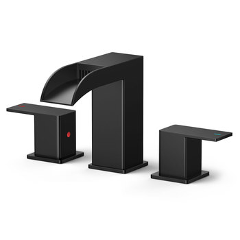 Lavabo de acero inoxidable con doble Mango, cuadrado, negro, salida de cascada para baño, fregadero frío y caliente, un solo orificio, gran oferta, accesorio de baño