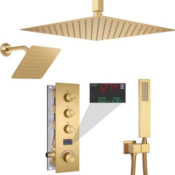 Válvula desviadora termostática de doble función montada en la pared de 12 pulgadas, sistema de grifo de ducha oculto de lluvia para Baño